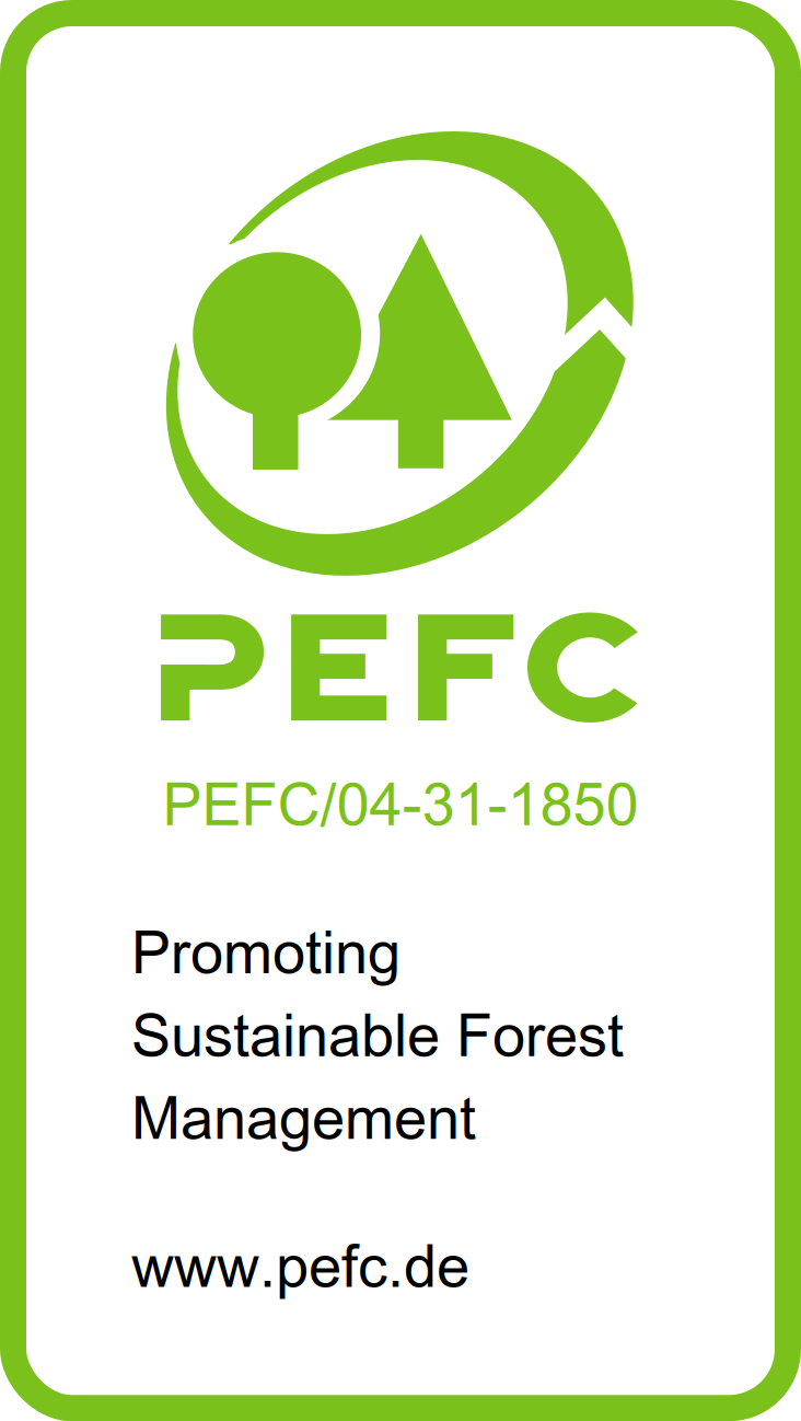 The Forest Stewardship Council® has defined a set of uniform principles for responsible forest management worldwide. The label, issued by TÜV SÜD Czech, indicates that the raw materials come from responsibly managed forests. Traceability is ensured by an audit number.