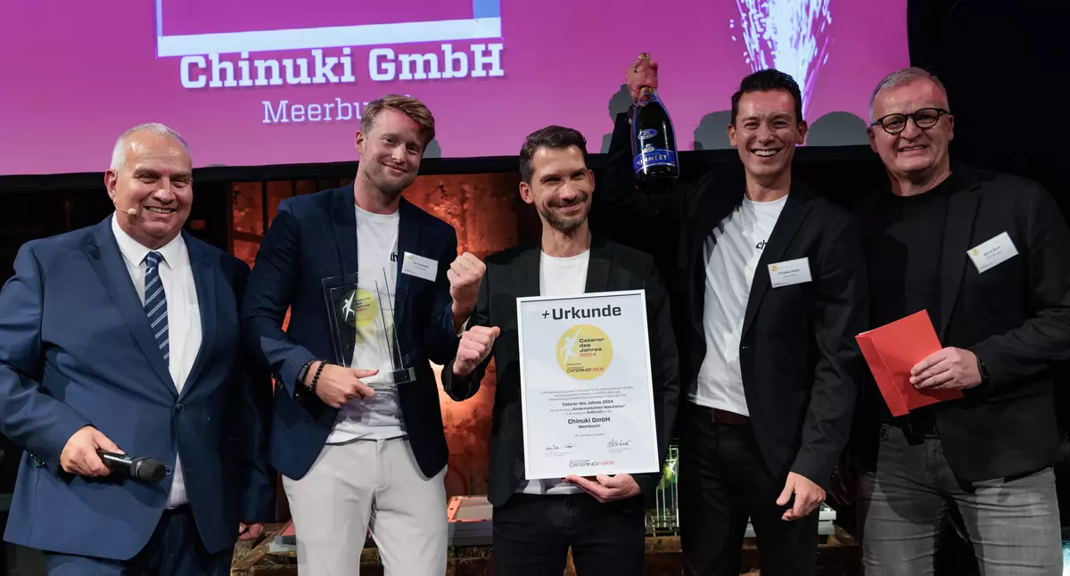 Tim Schwartz, Konrad Balcer und Christen Halter von der Chinuki Kindermahlzeiten Manufaktur GmbH wussten dabei mit "Prinzipien" wie kindgerechte Rezepturen, transparente Nährwerte mit einem Schwerpunkt auf pflanzlichen Proteinen, regionale und saisonale Bio-Zutaten ohne Zusätze, schonendes Sous-Vide-Verfahren und einem nachhaltig orientierten Bestellprozedere besonders zu überzeugen. Beeindruckend auch, mit welcher Akribie sich die drei sympathischen Senkrechtstarter, allesamt Neulinge in der Branche, fundierte Marktkenntnisse erworben hatten, bevor ihr Business so richtig durchstarten konnte. Das Chinuki-Angebot, ausgezeichnet als "Caterer des Jahres 2024" in der Kategorie "Aufbruch", richtet sich in erster Linie an Tageseltern oder Kindertagesstätten.