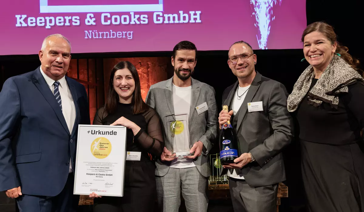 Gastgeber, Preisträger und Nominierte beim großen Finale im HARBOUR.CLUB Köln: Der Branchen-Award "Caterer des Jahres 2024" fand mit einem nahezu perfekt organisierten und stilvoll in Szene gesetzten Abschluss-Event einen krönenden Abschluss. Ausgezeichnet wurde Chinuki (Meerbusch), Keepers & Cooks (Nürnberg), WildparkTaste - Made by Traube Tonbach (Karlsruhe), lemonpie (Bad Münstereifel, gemeinschaftlich mit PAPSTAR) und die Compass Group (Eschborn). Insgesamt waren elf Cateringunternehmen aus ganz Deutschland nominiert.