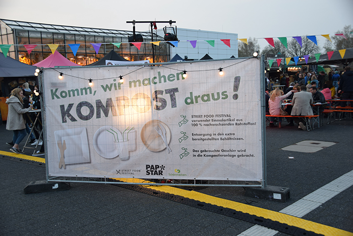 Das gemeinschaftlich initiierte Pilotprojekt von PAPSTAR, Street Food Festival (Riekenbrauk Schmidt GbR) und den Schönmackers Umweltdiensten hätte besser nicht laufen können. Tausende von Festivalbesuchern haben bei optimalen äußeren Bedingungen mit viel Sonne toll mitgemacht und ein Abfalltrennverhalten an den Tag gelegt, mit dem wir selbst in unseren kühnsten Vorstellungen nicht gerechnet hätten. In den extra bereitgestellten Behältnissen für Geschirr, Besteck und Becher aus nachwachsenden Rohstoffen (Holz und Frischfaser-Karton, Palmblatt, Zuckerrohr oder Mais) waren kaum Fehlwürfe feststellbar. Dieser Eindruck wurde uns direkt am Montagmorgen auch noch einmal seitens des Kompostwerks in Goch bestätigt.