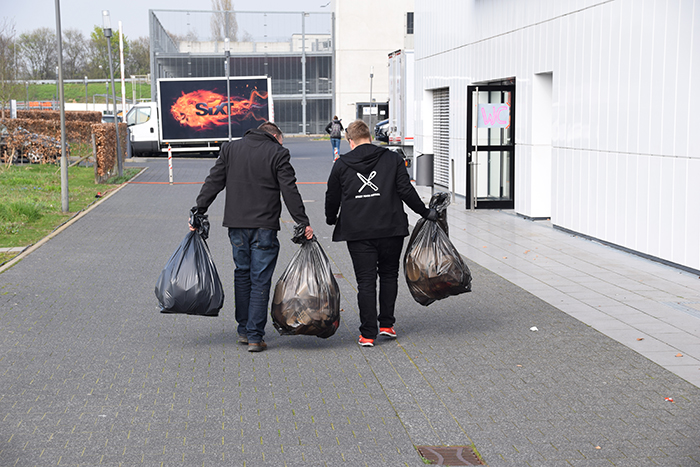 Das Kompostmaterial (Geschirr, Besteck und Becher aus nachwachsenden Rohstoffen), round about 400 Kilogramm, ist mittlerweile dem Rotte-Prozess zugeführt worden. Eine andere interessante Zahl: Das Volumen des parallel eingesammelten Restmülls machte satte 1000 Kilogramm (eine Tonne) aus. Dabei ist jedoch einzuschränken, dass wir vor Ort kaum Fehlwürfe in die Abfallbehältnisse für das gebrauchte Geschirr hatten, dafür aber in die umgekehrte Richtung. Soll heißen: Im Restmüll sind sicherlich auch größere Mengen von (PAPSTAR)-Produkten aus nachwachsenden Rohstoffen feststellbar.