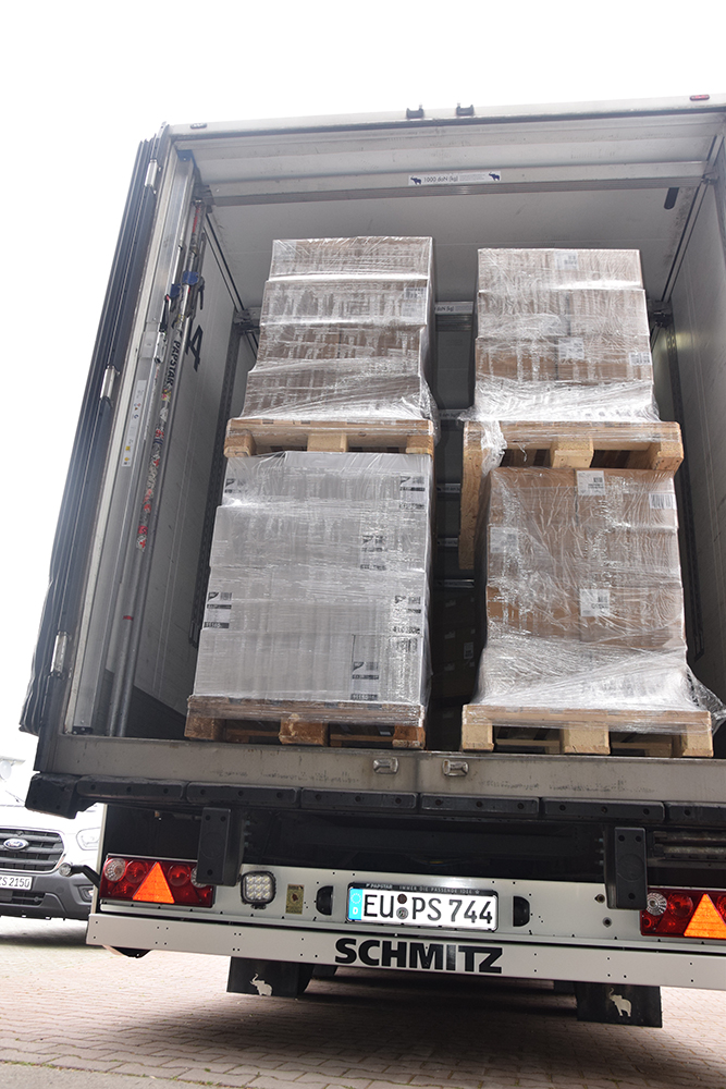 48 Stunden nach besagter Mail traf die Ware dann auch schon im Lager des "Blau-Gelben Kreuzes - Deutsch-Ukrainischer Verein e.V." in der Kölner Marktstraße ein, um von dort aus auf zwei Hilfsgütertransporte (siehe nachstehende Pressemitteilung) verteilt zu werden. Das Volumen: 18 Paletten, 483 Kartons, 15 Kubikmeter, 2630 Kilogramm. "Für uns stand außer Frage, dass wir die Bevölkerung in der Ukraine und auch die vielen tausend Kriegsflüchtlinge aus dem Land bestmöglich unterstützen möchten", so Bert Kantelberg: "Von daher haben wir der Stadt Köln auch unsere weitere Unterstützung im Rahmen unserer Möglichkeiten signalisiert."