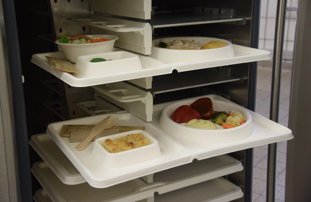 Im Rahmen der innovativen und nachhaltigen Speisenversorgung ist TomTab - als Blanko-Tablett oder mit verschiedenen Einteilungen - zu hundert Prozent kompatibel mit den Speisentransportwagen der ELECTRO Calorique GmbH. Das im Ruhrgebiet in Herne ansässige Unternehmen hat das System demnach auch im Klinik-Alltag auf Herz und Nieren getestet, um zu durchweg positiven Ergebnissen von innovativem Charakter zu gelangen. Nicht nur, dass das Tablett aus Zuckerrohr alle spezifischen Standards der Speisenverteilung erfülle, das dahinterstehende Procedere sei sogar wesentlich effizienter und hygienischer als jede herkömmliche Variante.