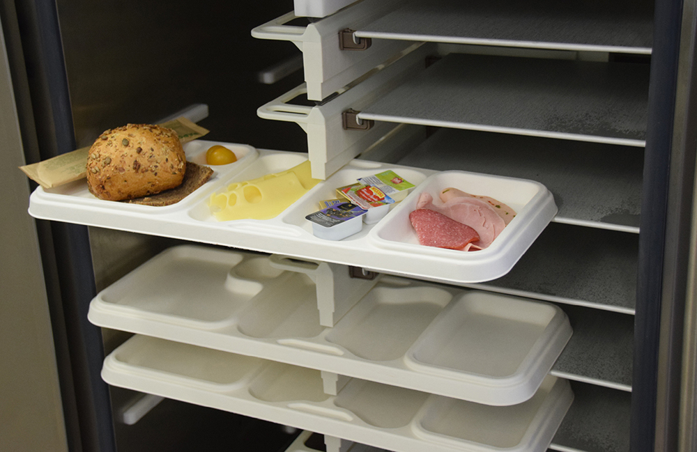 Die Vorteile lassen sich auflisten: Durch seine Materialbeschaffenheit verkürzt das wasser- und temperaturresistente TomTab-Tablett die Aufwärmzeit innerhalb des Verteilwagens (bei Erhalt von Qualität oder Geschmack der erwärmten Speisen); zudem liegt es stabil in der Hand und ist obendrein federleicht und geräuschlos. Heiße und kalte Speisen können durch die passgenaue Abstimmung auf die Speisenverteilsysteme der ELECTRO Calorique GmbH gleichzeitig serviert werden.