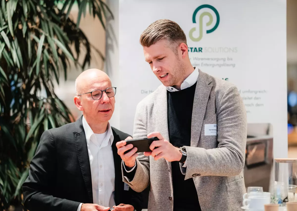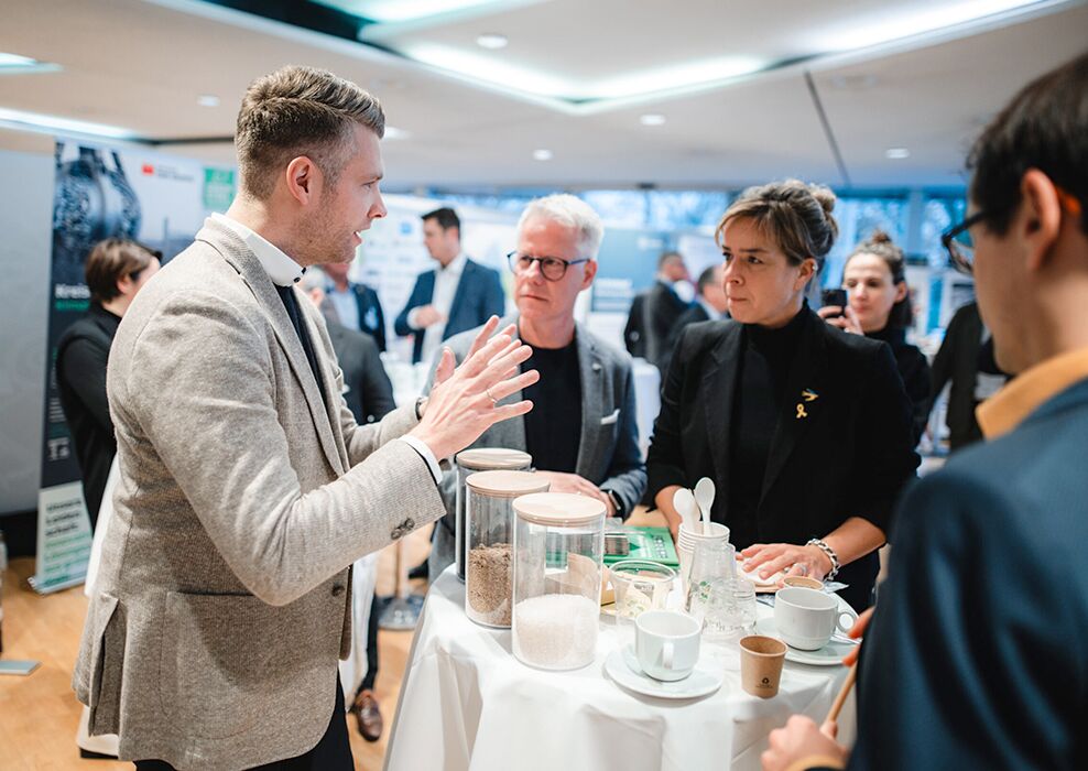 "Zirkuläres Wirtschaften im Rheinland": Auch Tom Kantelberg (Managing Director der PAPSTAR GmbH) und Christoph Stahlhacke (Key Account Manager PAPSTAR Solutions GmbH) waren der Einladung der Metropolregion Rheinland e.V. in den Düsseldorfer Landtag gefolgt, um im Rahmen eines Parlamentarischen Frühstücks mit der nordrhein-westfälischen Wirtschaftsministerin Mona Neubaur über Einmalgeschirr aus nachwachsenden Rohstoffen und damit einhergehenden zirkulären Lösungskonzepten, speziell im Eventcatering und in der Gemeinschaftverpflegung, zu informieren.
