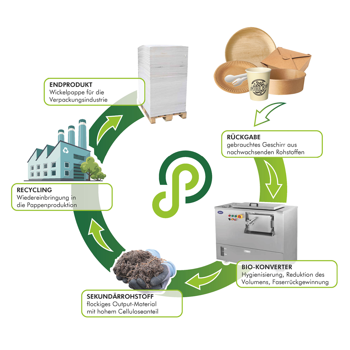 Laut Studien schneiden Einmalverpackungen unter Nachhaltigkeitsaspekten in vielen Bereichen signifikant besser ab als Mehrwegverpackungen. Wesentlich ist dabei, dass nachwachsende Rohstoffe zum Einsatz kommen. Die PAPSTAR Solutions GmbH hat das nachhaltige Gesamtkonzept "Zero Waste" für Cateringgeschirr und -besteck auf Veranstaltungen mit den Leistungsbausteinen Beratungs-, Waren-, Kommunikations-, Recycling- und Kreislaufkonzept entwickelt. Damit wird nachhaltiges Catering auf Veranstaltungen möglich, ohne dass Abfälle durch Geschirr und Besteck entstehen. Die Leistungen wurden aufeinander abgestimmt: Die Eventabfälle werden durch ein Behälter- und Kommunikationskonzept nach Restmüll und Produkten aus nachwachsenden Rohstoffen getrennt gesammelt. Mit dem Unternehmen Schönmackers wird durch den Einsatz eines Bio-Konverters eine Faseraufbereitung des gebrauchten Einmalgeschirrs erreicht. Der so gewonnene Sekundärrohstoff wird anschließend zu Pappe weiterverarbeitet, die in der Industrie zum Einsatz kommt.
