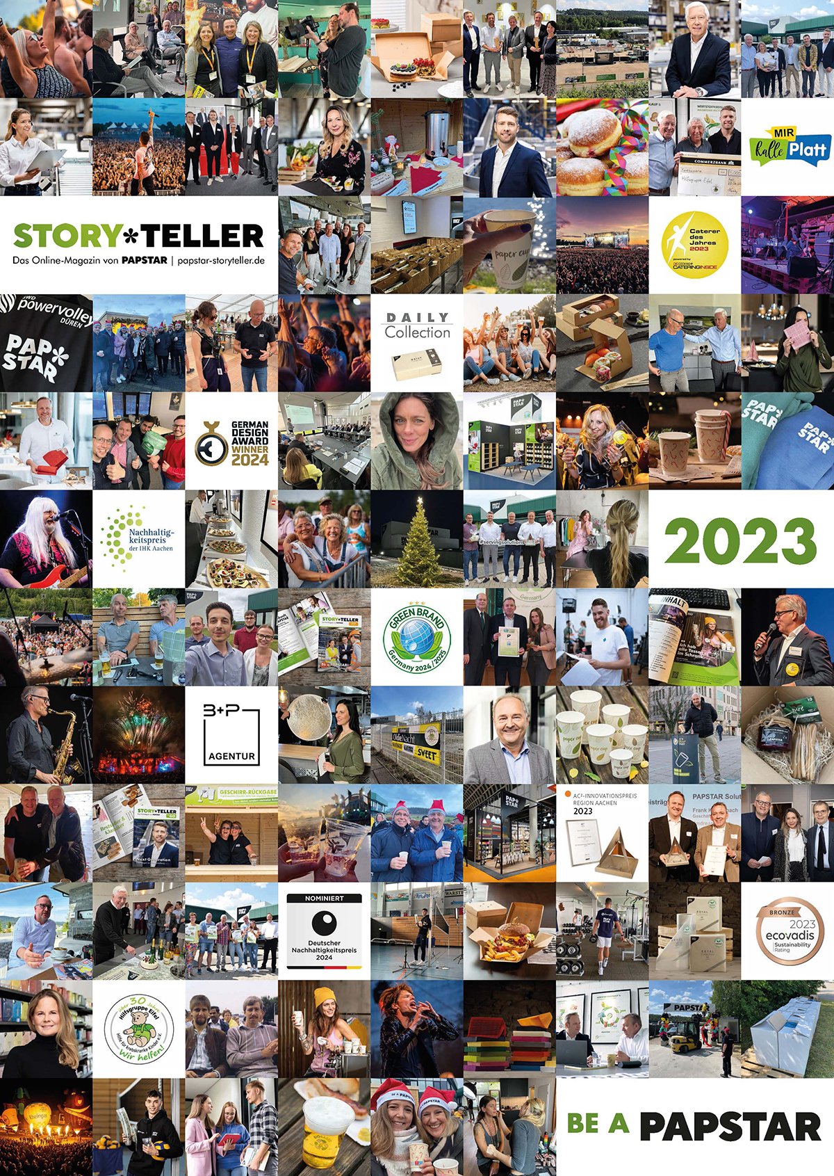 Die PAPSTAR-Welt steckt voller Geschichten, die es zu erzählen gilt: Geschichten der Kunden, des sozialen Engagements, zu Produkten und Innovationen, von nachhaltigem Denken, zum Know-how im Unternehmen, zum Lifestyle der Menschen und aus der Welt, in der wir leben - Kunst, Kultur, Sport, Technik, Events und Trends.