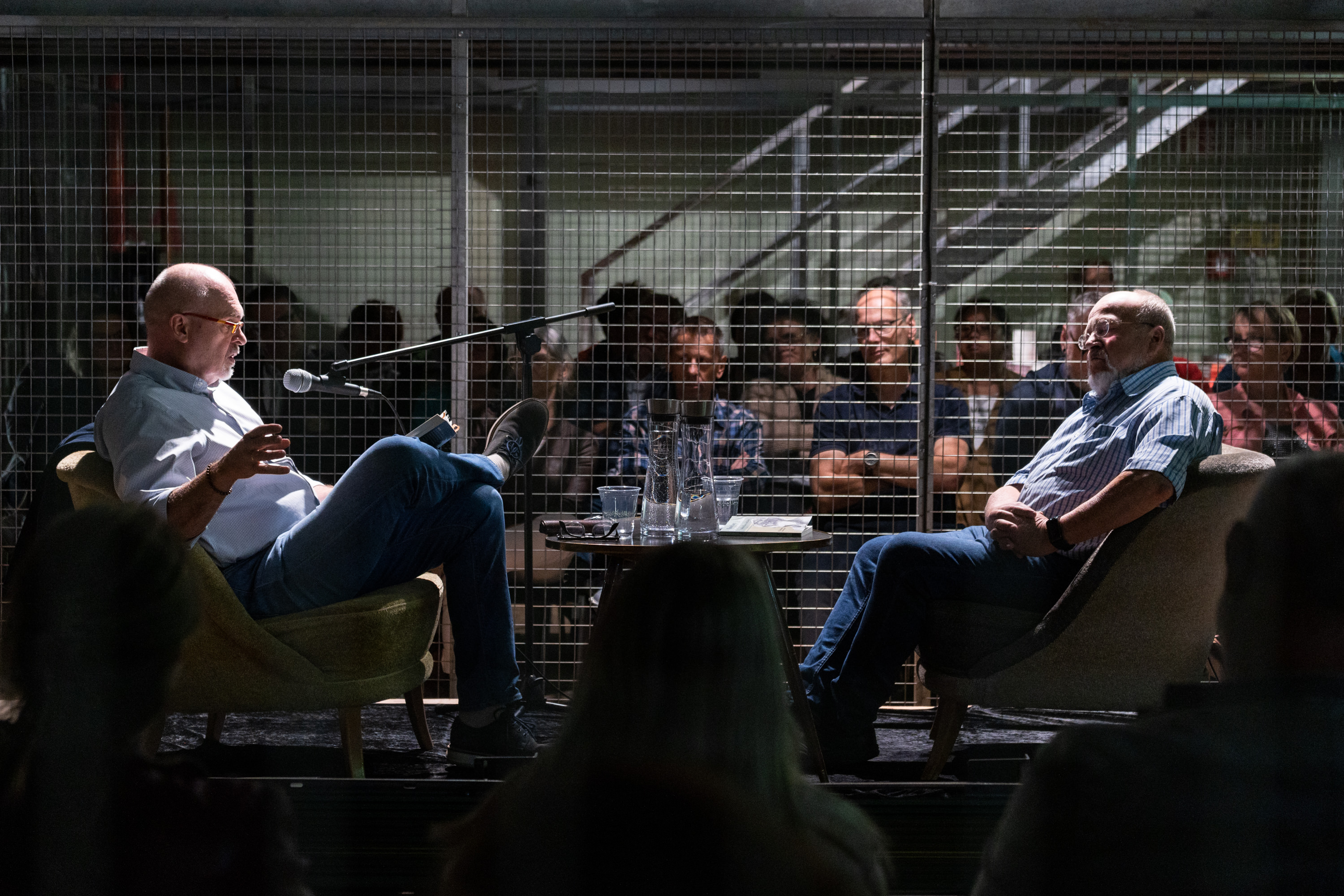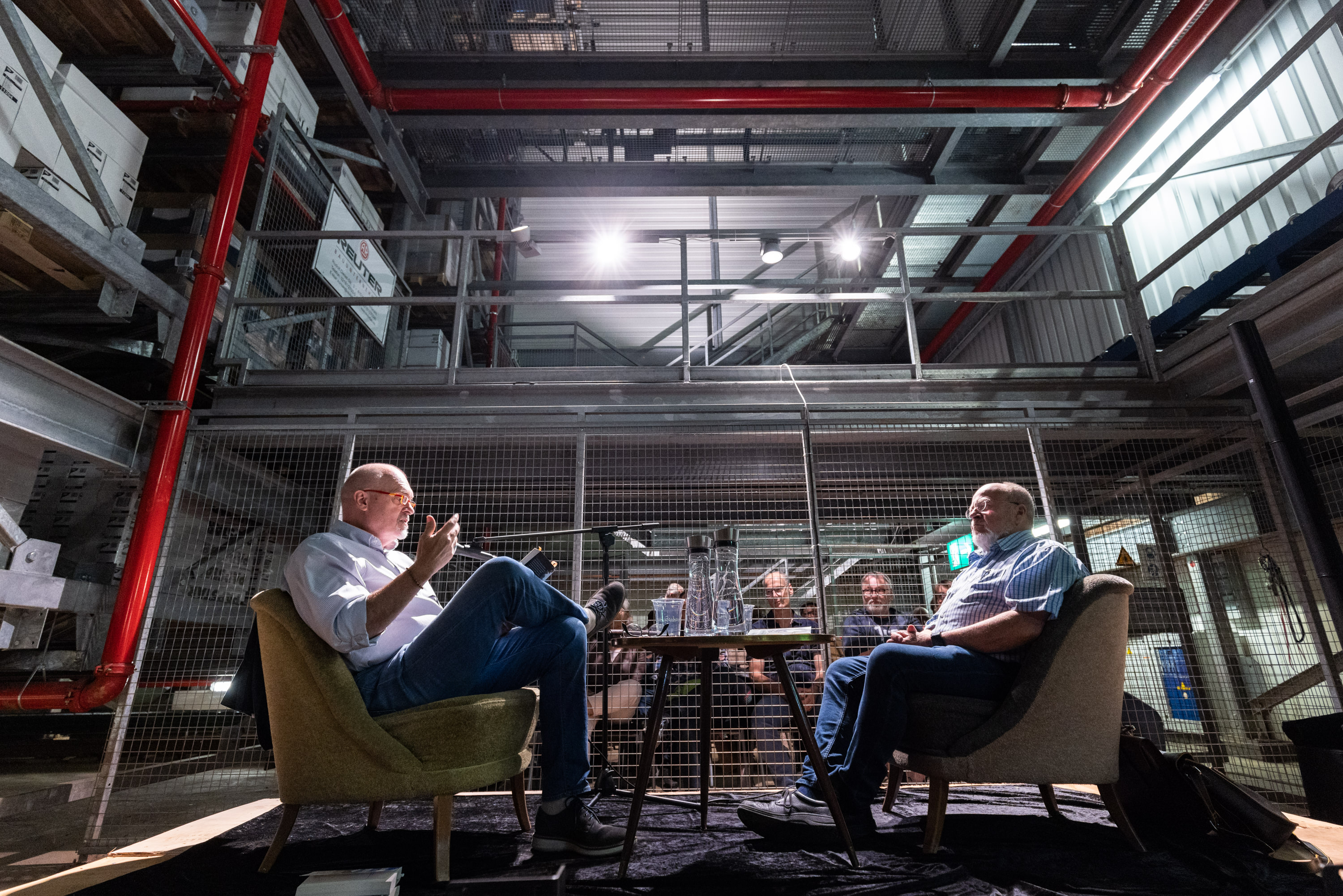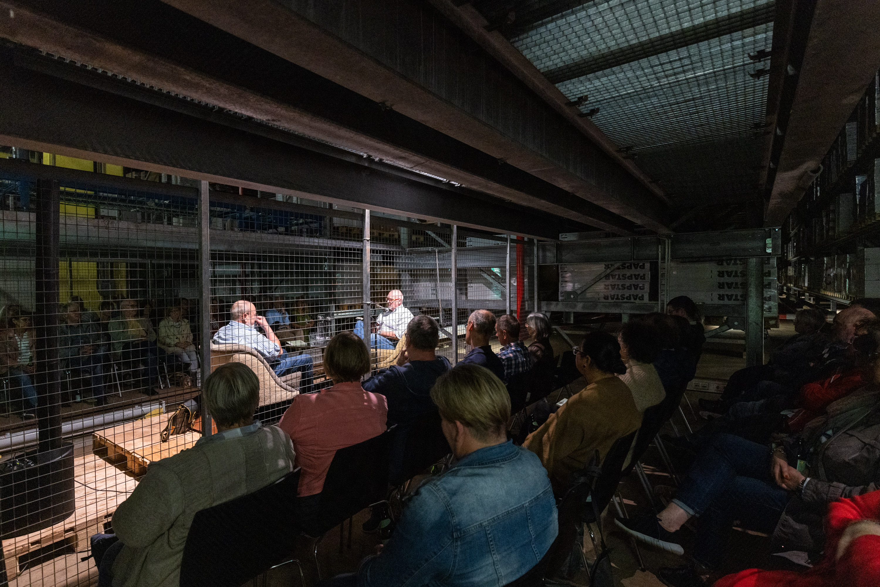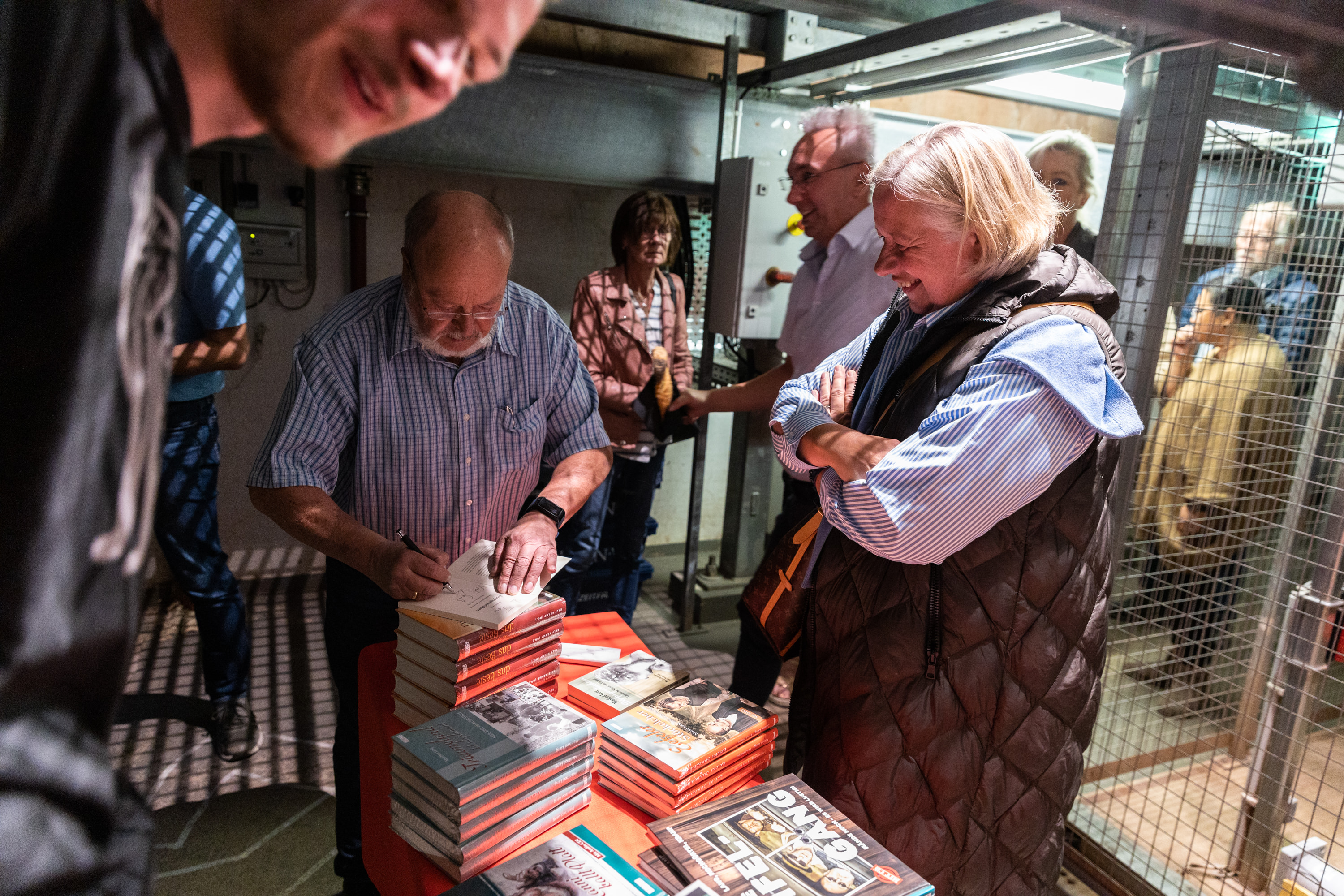 Ob Kriminalautoren es immer mit der Wahrheit so genau nehmen, sei einmal dahingestellt. Sie deshalb gleich hinter Gitter zu bringen, ist gleichwohl eine drastische Maßnahme. Der bekannte Krimiautor Andreas J. Schulte aus Andernach und Lokalmatador Manfred Lang ("Manni kallt Platt") jedenfalls landeten während des Krimifestivals "Nordeifel - Mordeifel" am Donnerstag, 8. September 2022, im Hochregallager der Firma PAPSTAR im Kaller Gewerbegebiet hinter Schloss und Riegel.